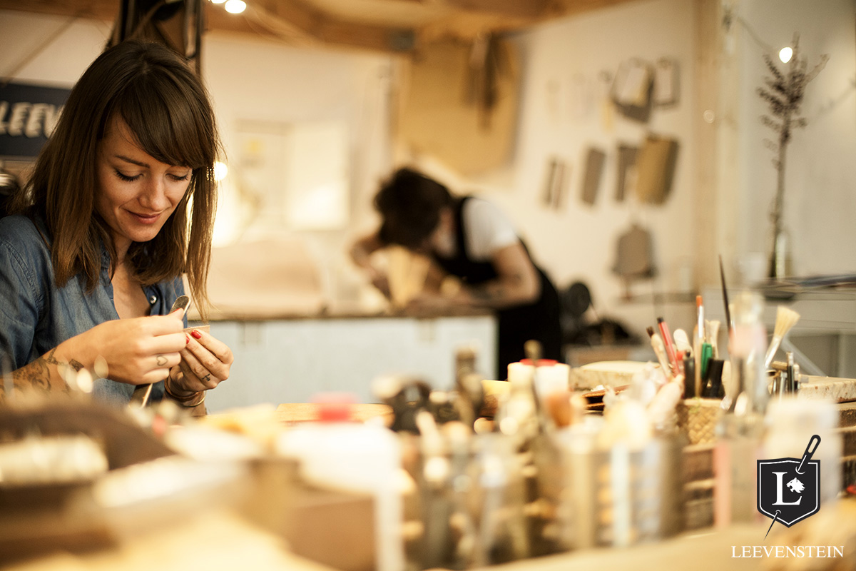 Timeless, functional design is the characteristic of Leevenstein’s products which are mainly manufactured by the two ladies of the team, Mona and Tilli. It’s the customer who decides whether the future companion is clean and plain or if it gets a design carved in by hand. This old artistry is like drawing motifs with a special kind of knive into the leather. The love for leather and it’s very own characteristics can be seen in every bit. Mona puts it like this: “ Leather simply is a great material. It has a unique smell, look and feel. It lives on in a form we give it. Opposite to many other materials it gets better and more interesting the more it gets used. It adopts to it’s owner and ages with him or her. It tells the owner’s one-of-a-kind story. There will be no other piece alike.” And David adds “We simply love what we do: manufacturing products with our own hands that will accompany people a long way along their path” This love and passion for high quality made by hand can be found in every detail of this little company and it’s products. And it manifests in the promise to repair every piece for free. LEEVENSTEIN – leather accessories handmade in Berlin