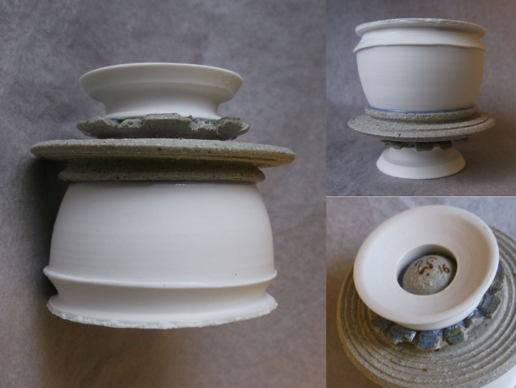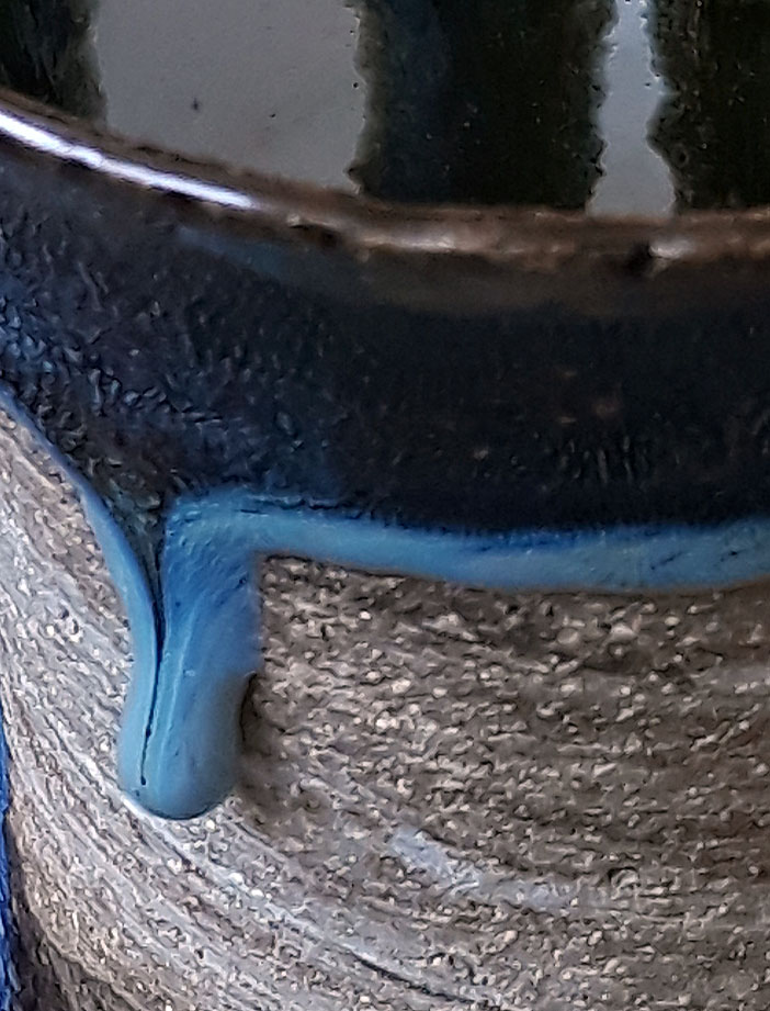 Contrary to “faïence”, or “terracotta” clays of low temperature (980 to 1100 degrees), stoneware and porcelain allow firings of 1250 to 1300 degrees Celsius, and thus potters can explore the so-called effect glazes, and the fusion of the minerals that compose them.
