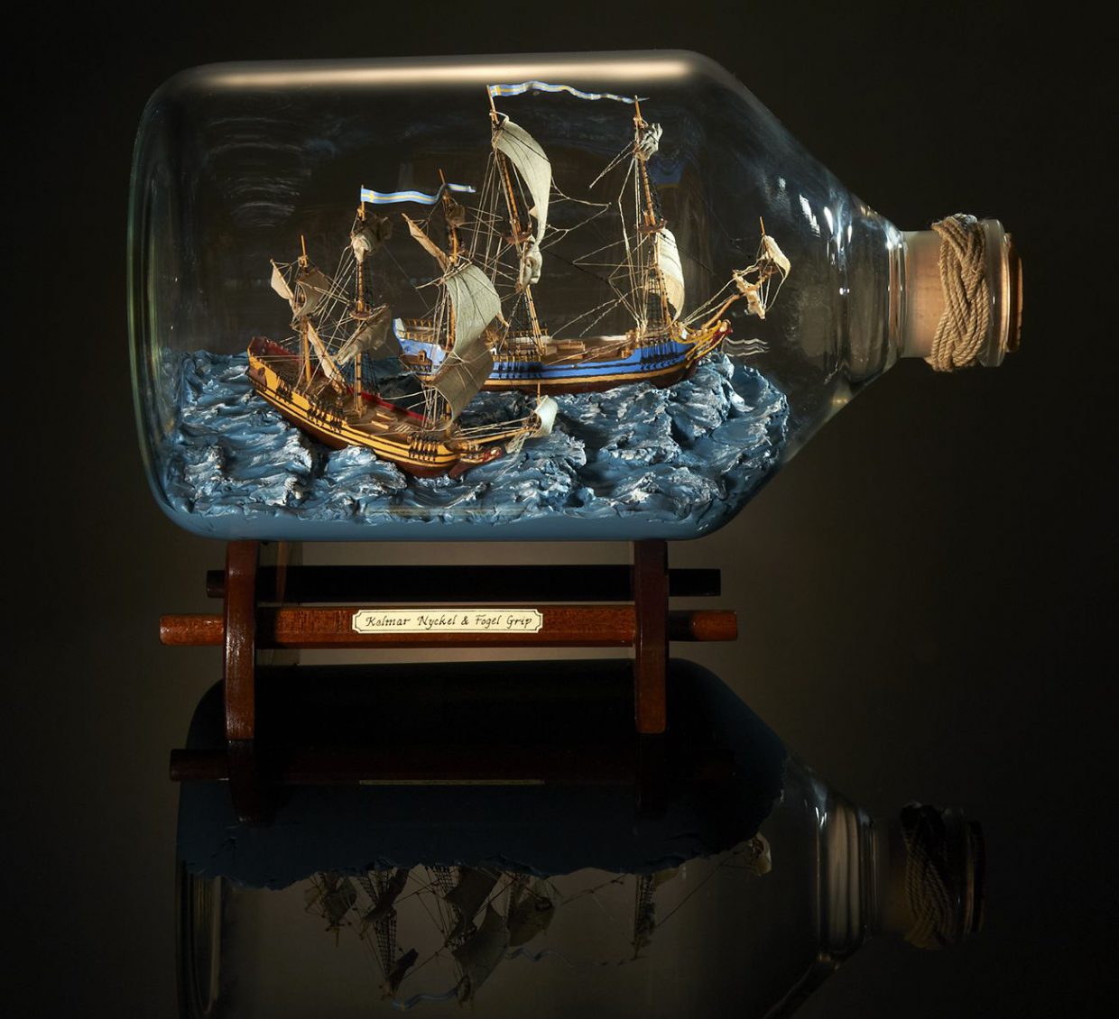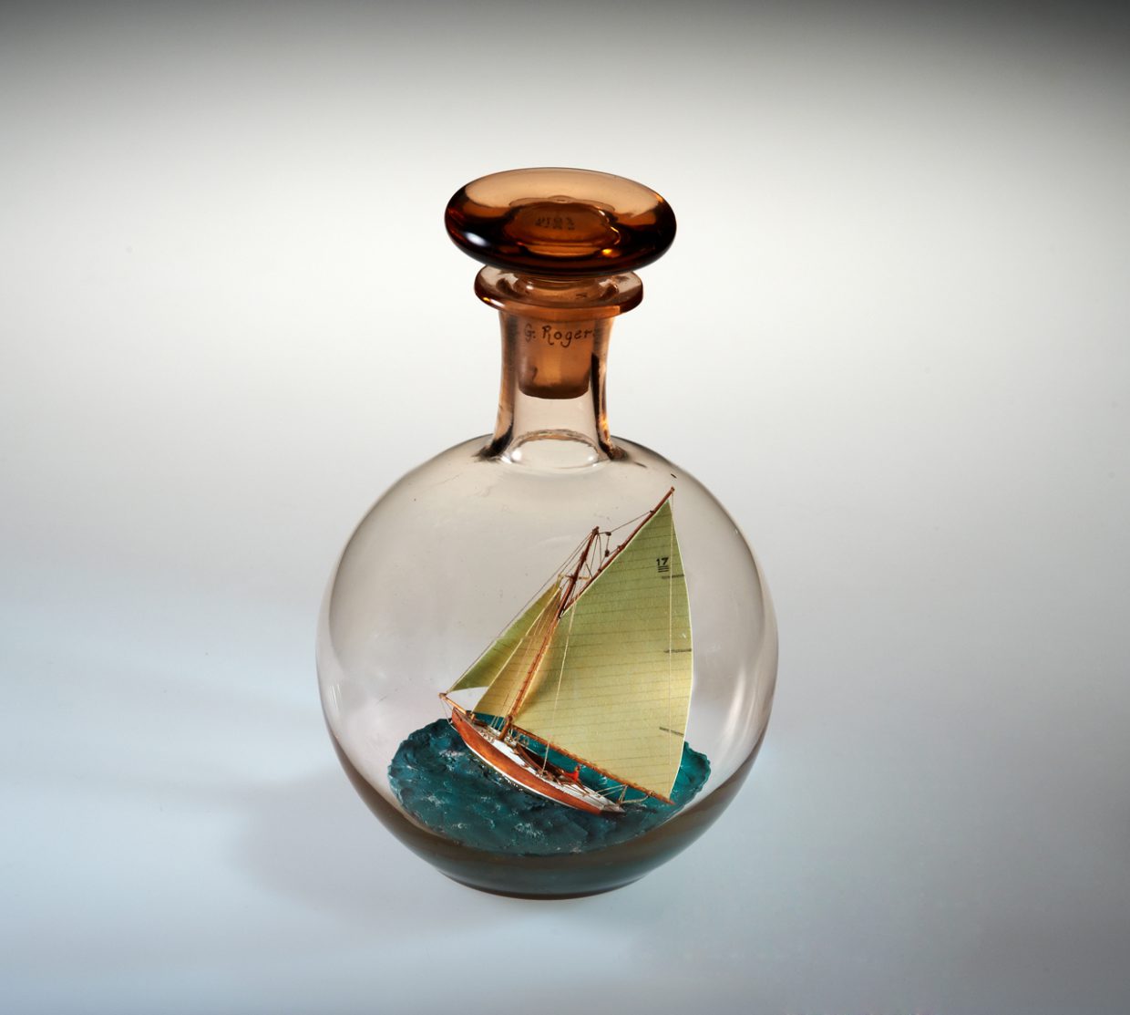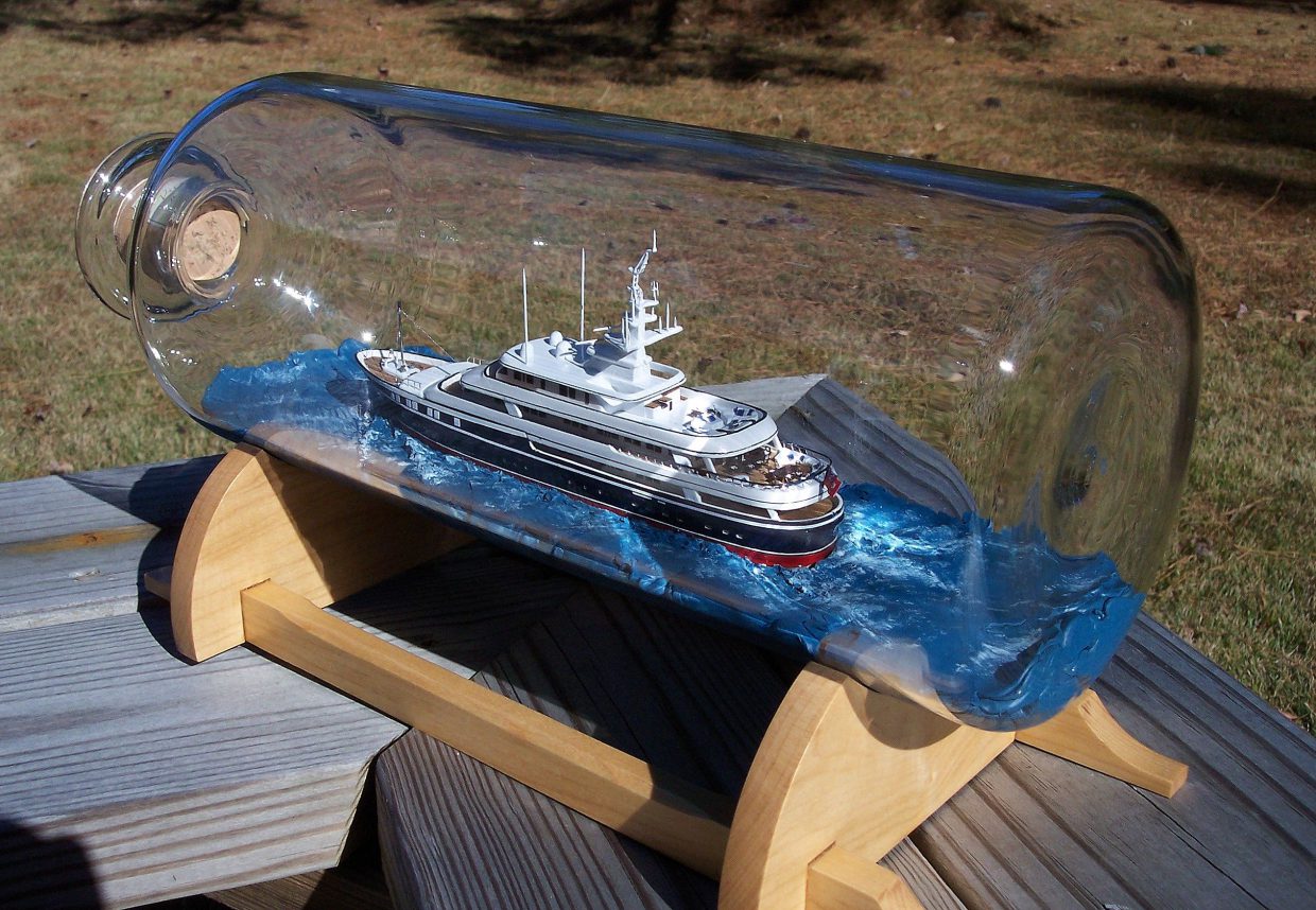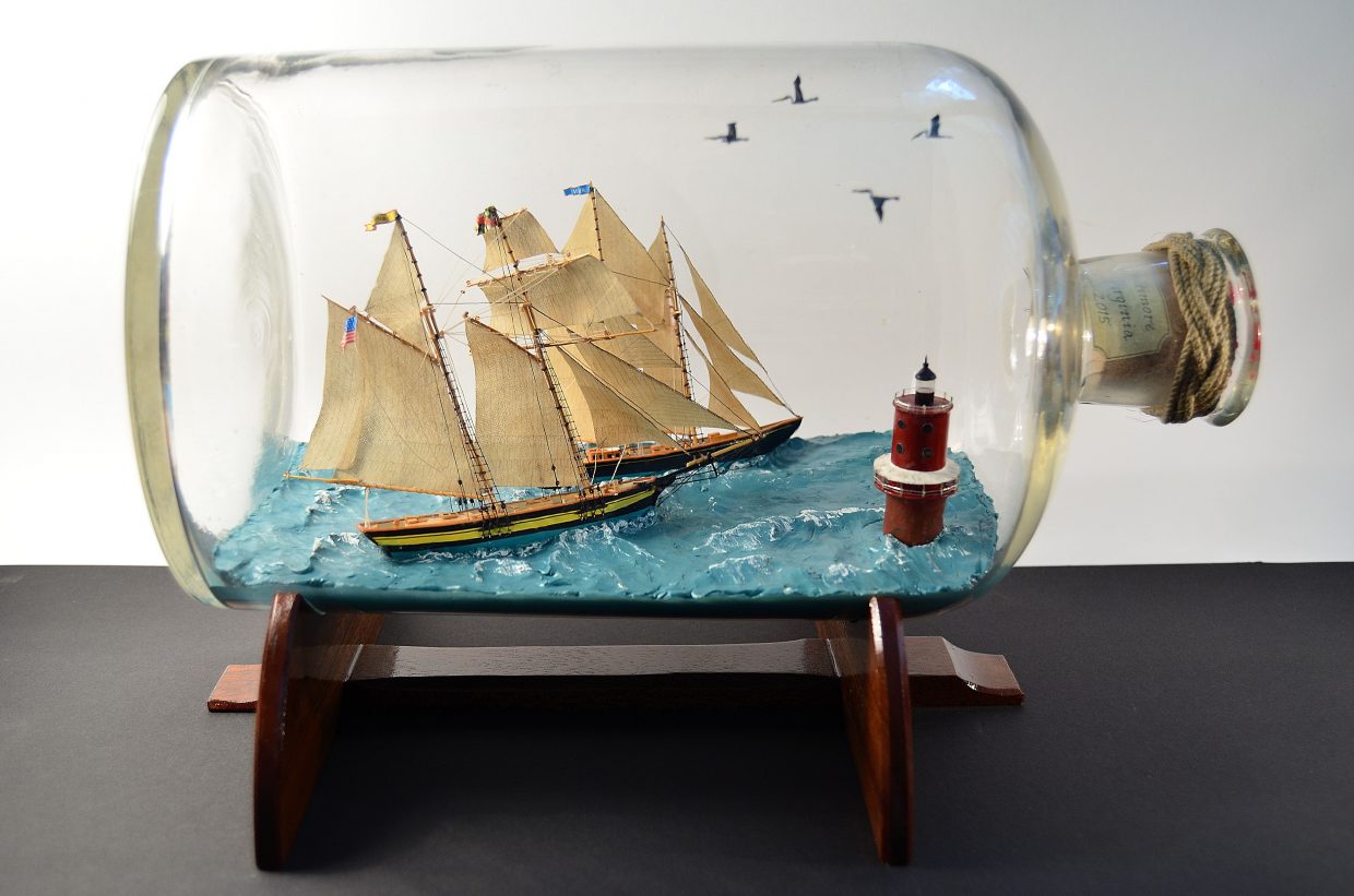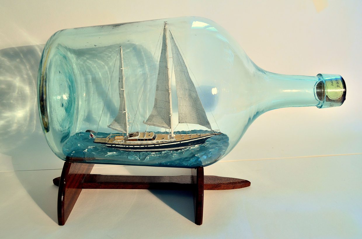My name is Heather Gabrielle Rogers (I go by Gabrielle) and I have dedicated myself to the fabrication of the unique art of ships in bottles. I have a Bachelors of Art degree from Bridgewater College, Virginia, USA, where I studied fine arts, and now live in work in Switzerland. Before I began working as a ship in bottle builder, I worked as a sign painter and boat letterer in Deltaville Virginia. I subsequently moved onto a sailboat with my husband, who is a boat builder, and we sailed the eastern coast of the United States, overwintered in the Bahamas, and extensively explored and visited numerous regions of the Chesapeake Bay on multiple cruises. These experiences exposed me to sailing vessels, the actual life on board a boat, and ultimately inspired me to begin producing my artwork. I have a great passion for the maritime world, its history, and conservation. Building ships in bottles allows me to preserve a part of its patrimony. Like model makers, I try to capture the reality of a ship in all it details, creating a miniature replica at the small scale. However, unlike static models, my ultimate desire is to capture the spirit and atmosphere of a real ship, actively navigating on a body of water. My ships in bottles are entirely built by hand out of various materials, and I spend a great deal of time researching and understanding how the vessels function. The hull is carved from a block of wood, the masts are turned from bamboo, and I incorporate as many details on the deck and throughout the rigging as possible. The sails are set in respect to the wind and sea conditions, and miniature figures are often added on board, bringing the vessel to life. In many cases, the ships and scenery are fabricated in multiple sections to pass through the neck of the bottle and reassembled inside. My goal is to capture a moment of time in the passage of a boat at sea, and I often incorporate, landmarks like lighthouses, birds flying overhead, buoys, and shorelines to create active scenes. I have produced nearly 100 different ships and scenes in bottle ranging from boats navigating alone, multiple vessels together, traditional working scenes, as well as scenes inspired from films and literature. I have created everything from tiny rafts, dinghies, sloops, schooners, square riggers, power boats, to mega yachts, both classic and modern. I produce custom ships in bottles for private customers, collectors, as well as companies for publicity purposes. When possible, I participate and demonstrate my work at local events and festivals, including JEMA within the canton of Vaud in 2015. I have had six articles published in Swiss newspapers, and was filmed for a television program called “Passe-moi les Jumelles,” which aired in April of 2016. I enjoy sharing my knowledge with other ship in bottle builders, and am a member of the Ship in Bottle Association in France, and ultimately find great pleasure in sharing my work and its method of fabrication with the public.