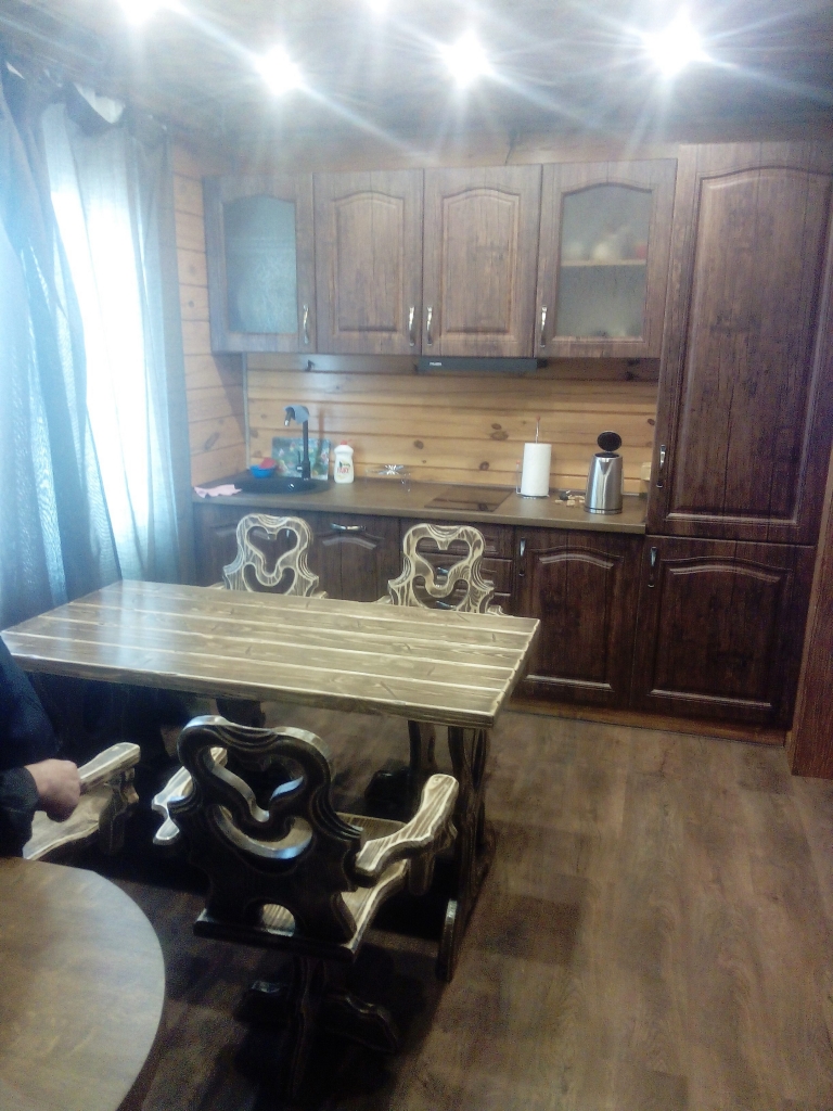 In our work, we use an industrial woodworking equipment; a band sawmill designed for sawing round wood with a diameter of 1.2 m and a length of 6 m, four-sided machine with sets of cutters for the manufacture of finished products in one pass, machine for making corner locks in profiled wall beams of the “warm corner” type, longitudinal-edged mechanically driven machine for longitudinal sawing of boards, plus auxiliary equipment and hand tools. Some of our machinery were self-designed and self-assembled using materials from the Internet.