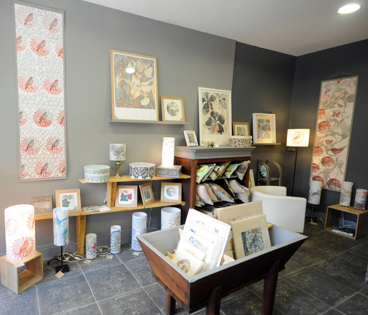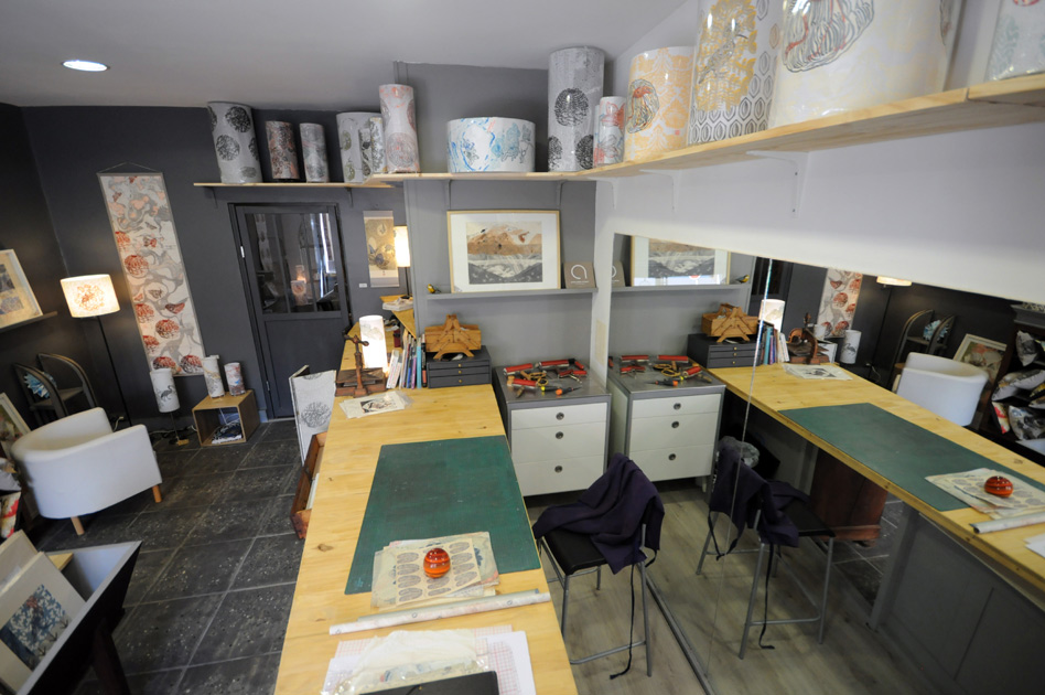 Véronique Agostini pratique la Gravure taille-douce depuis de nombreuses années, elle s’est spécialisée dans la gravure taille d’épargne (sur bois ou linoléum) et l’art ancestral japonais du Suminagashi (Encres-flottantes). A partir de ses œuvres très graphiques (Estampes), elle fait le choix de décliner son travail de différentes façons, sur des Kakemonos, des Paravents, Luminaires, motifs pour tissus… Chaque pièce est unique