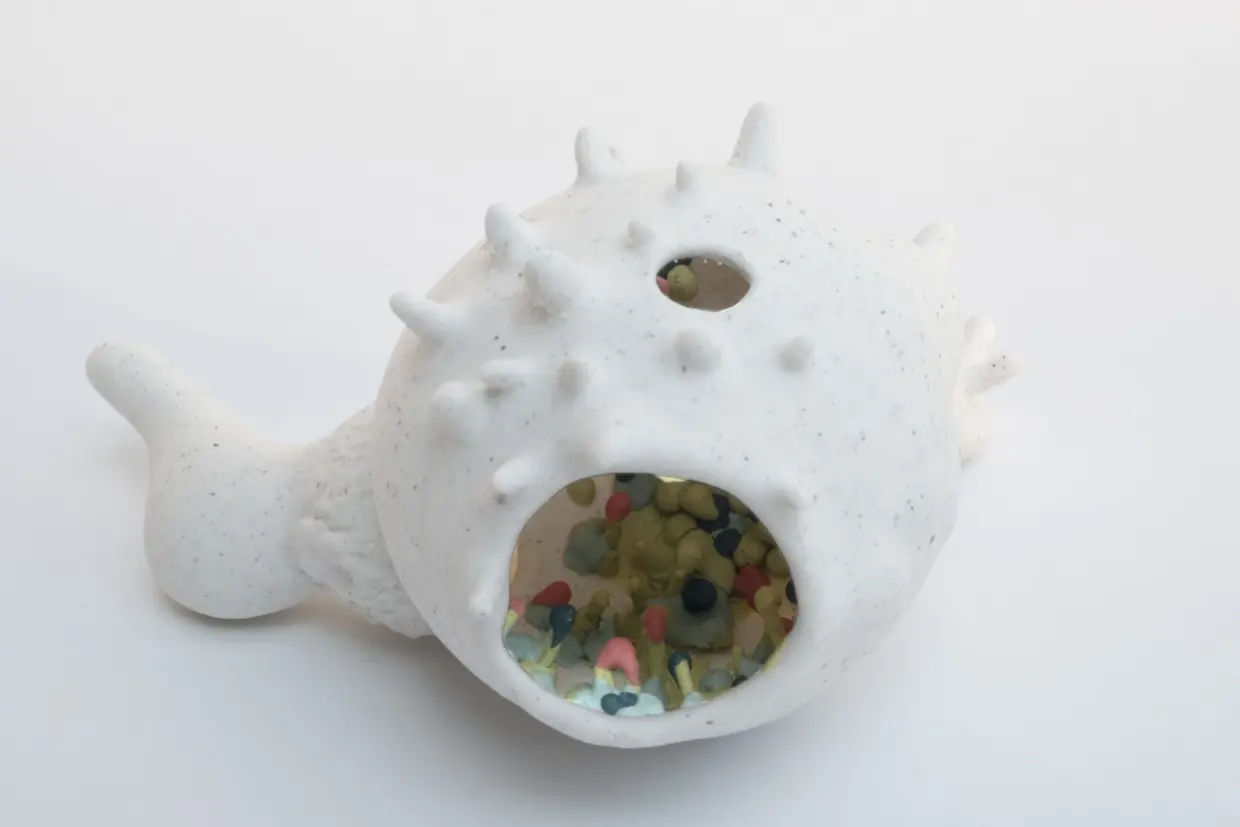 Analizo sus imperfecciones, sus tensiones, sus texturas: arrugas, protuberancias, testimonios de una historia íntima. La porcelana se convierte entonces en una membrana viva, capturando la fragilidad y la belleza de esta superficie. Más allá de las apariencias, mis esculturas invitan a un viaje interior. Las aberturas revelan mundos coloridos y misteriosos, en constante diálogo con el exterior.
