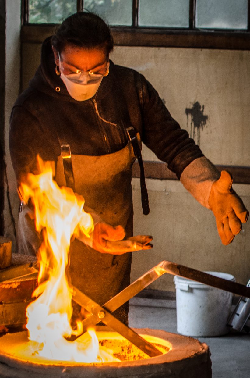 Née à Lausanne en 1980, Tamara Cerny s’est très tôt passionnée pour tout ce qui touche à l’art. A 16 ans, elle découvre la fonderie d’art dans un atelier à Saint-Cierges. Elle débute alors un apprentissage de fondeuse d’art à la fonderie Geya à Ogens. Elle perfectionne ensuite sa formation chez l’artisan fondeur Monnier à Moutier, réalisant entre autres une commande de 300 multiples en bronze. En 2010, elle installe son atelier à Bercher où elle continue d’exercer le moulage et explore diverses matières de reproductions. Mais le bronze lui manque, l’aboutissement du métier et le métal rougeoyant. Elle construit alors ses outils et son four de fusion. En 2013, l’atelier de moulage devient fonderie d’art et accueille les artistes ayant des oeuvres à reproduire. En parallèle, elle développe également son propre travail de sculptrice. Tamara Cerny enseigne le moulage à l’école d’art EDA où se trouve son atelier qui se veut un lieu de transmission et d’expérimentation. Elle y propose également des stages de fonte traditionnelle africaine dite « Banko ».