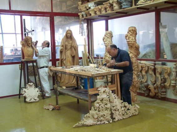 LS: At a technological level, in the last 2-3 years we have incorporated numerical control, a CNC (Computer Numerical Control) that allows us to make complex figures and sculptures in 3 dimensions, particularly for the altarpieces that we send to the United States. This innovation gives us support in those works that are really complex to do by hand, although there are almost always parts that have to be finished in this way. We are also starting to do 3D carvings and sculptures although for now the CNC is neither fast nor perfect. It is only a support. My brother is currently doing 3D design and modeling classes to model the parts on the computer so the machine does the carving. It is an innovation that allows us to give more quality in the finishing of the pieces but not so much speed in production.