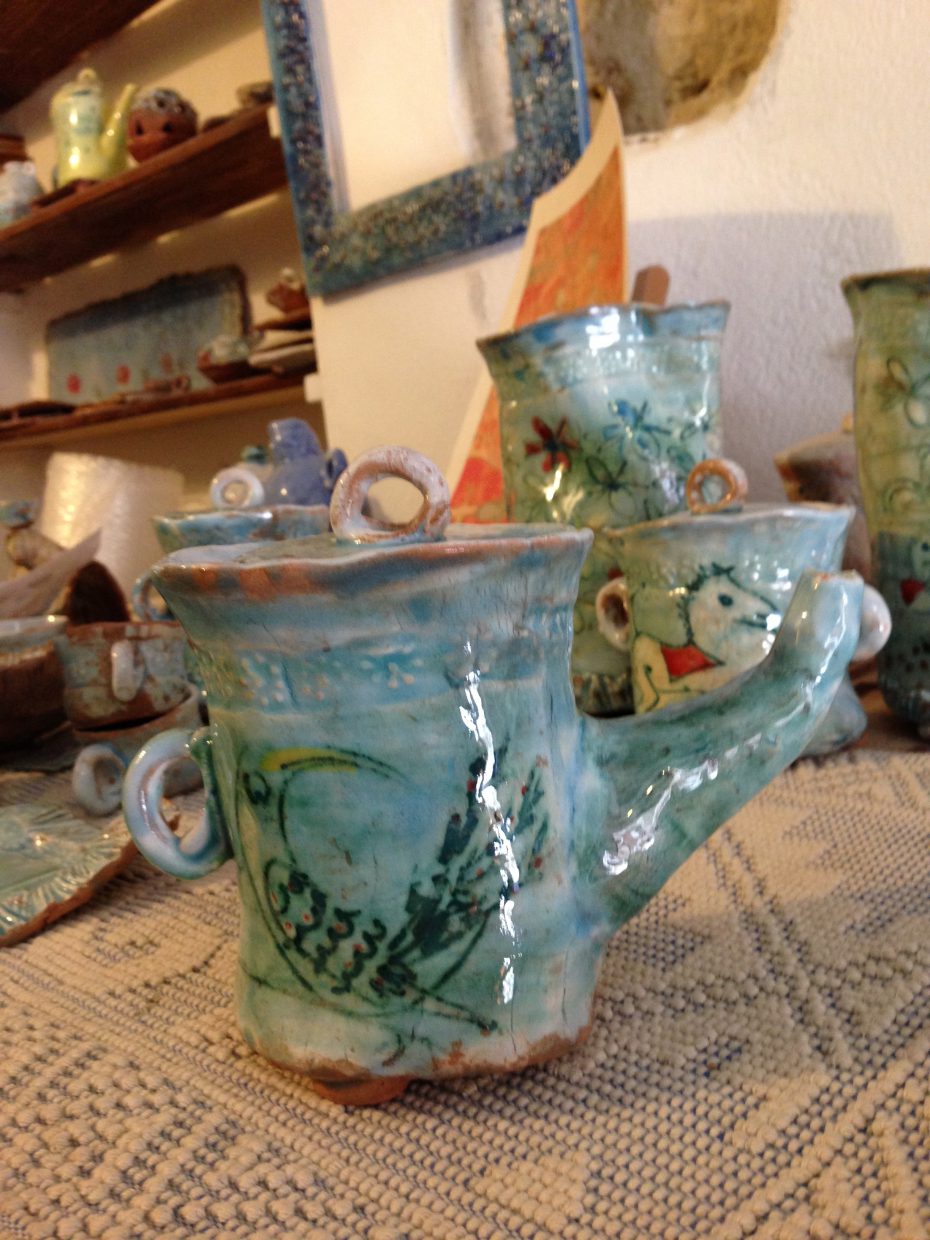 Mi sono reso conto molto presto, che i disegni prendevano uno spazio importante nella mia vita soprattutto perchè osservavo e riuscivo a dare un senso a quello che producevo. Nel 1979 ho frequentato a Milano la “Scuola di ceramica Alberto Cova” ricevendo i primi supporti per il mio interesse , e un valido supporto in questa ricerca affascinante e difficile. Il laboratorio “Ceramica Olianas Sardegna” nasce nel 1998 nel quartiere di Villanova a Cagliari, da allora mi dedico a tempo pieno alla realizzazione di ceramiche artistiche artigianali e la mia produzione incontra l’interesse del pubblico nei diversi negozi del settore turistico e non solo. La lavorazione dell’argilla e la decorazione entrambe eseguite interamente a mano in tutti i loro passaggi, dona ai singoli pezzi prodotti uno stile che li rende unici ed irripetibili. La particolarità che contraddistingue le mie ceramiche è il disegno. Il colore di base con il quale sono più conosciuto è il blu, nelle diverse scale di colore; su richiesta anche il giallo o il verde. Gli oggetti prodotti sono soprattutto d’uso quotidiano, sono piatti o centro tavola che possono essere usati con gli alimenti, in quanto non contengono piombo ; ma poi ci sono porta tovaglioli, appendini di varie dimensioni, tazzine da caffè con il piattino (oggetto veramente unico anche per i collezionisti), e poi la bijotteria con collane, orecchini e anelli, oggetti sempre unici ed esclusivi. Bicchieri porta penne o vasi di varie dimensioni, basi lampade, cornici con specchi tondi, quadrati o rettangolari, ma pure oggetti creati su vostra richiesta, se tu che osservi vuoi liberare la tua fantasia!