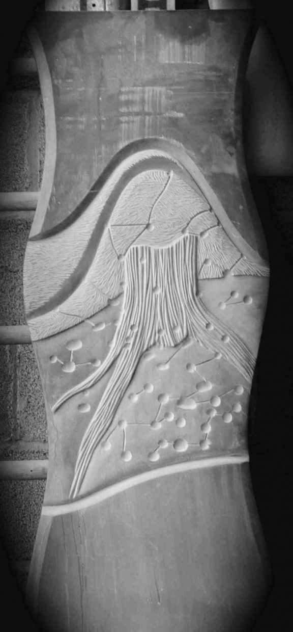 Environmental artworks for site specific locations in 2D and 3D works in wood, stone and earth works.