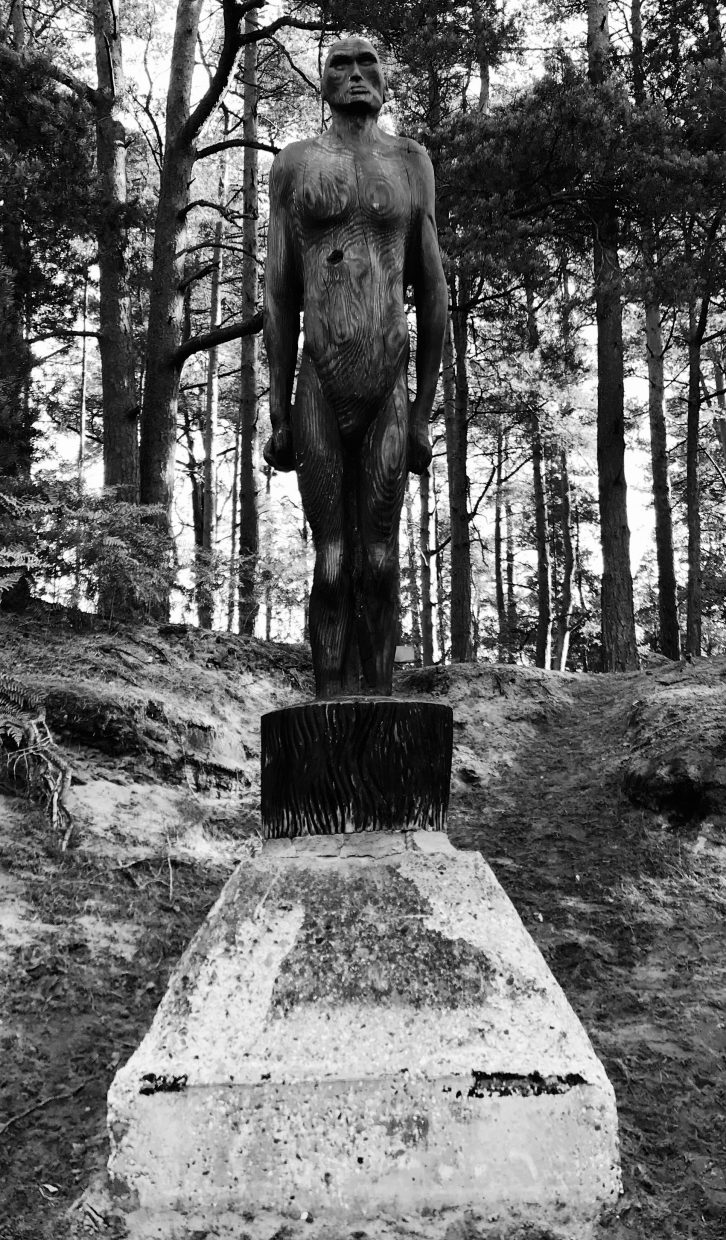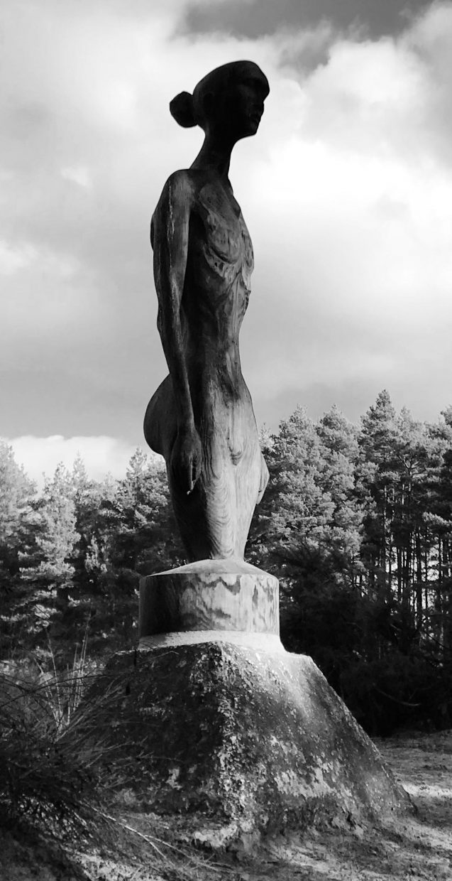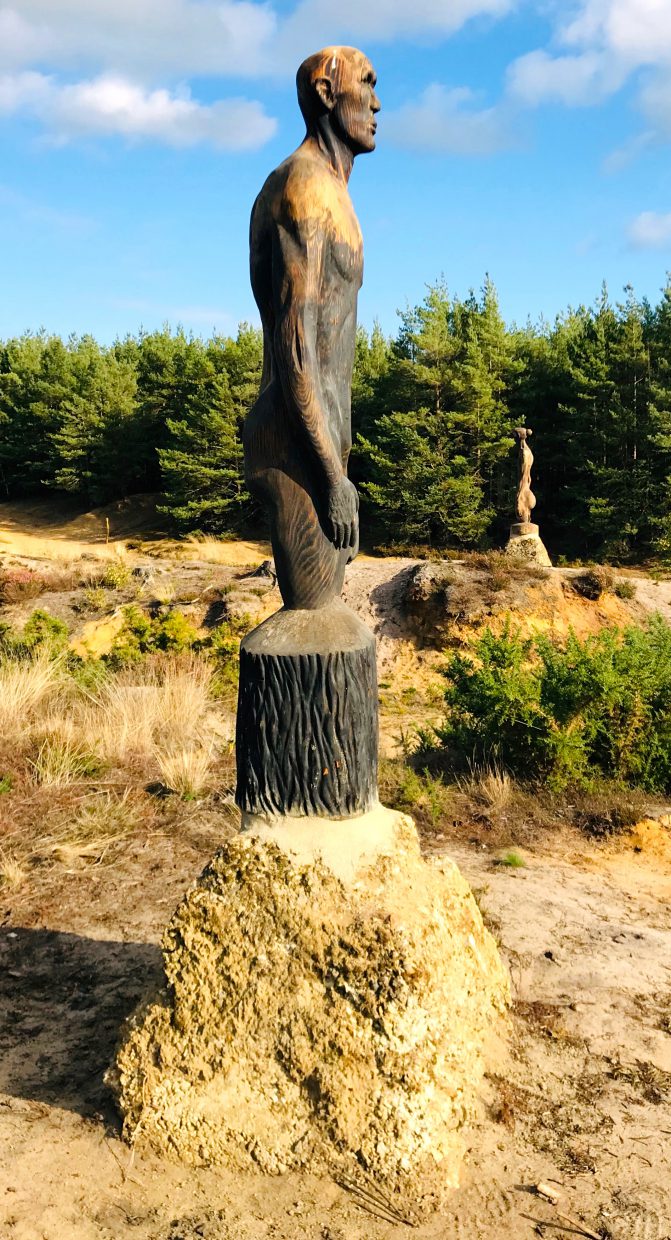 Representational artworks of flora and fauna, wildlife in natural environment and life size artworks of human figure.