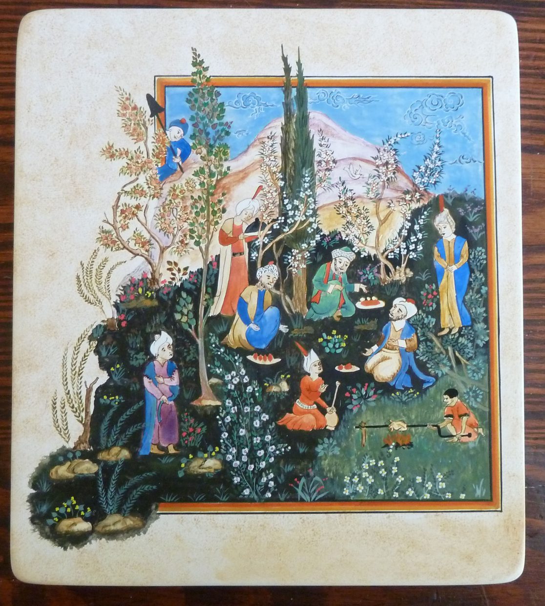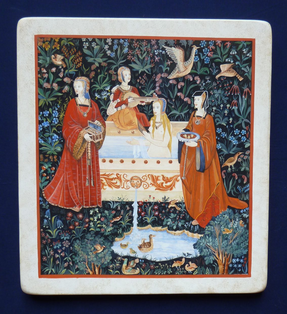 Dominique Sauvagère uses tempera on wood to paint illuminations, miniatures and richly decorated initials, taking her inspiration from western or Persian medieval manuscripts and using the methods and materials of the period. You can visit her studio free of charge and request a demonstration of gold leaf gilding and tempera. Dominique Sauvagère uses tempera on wood to paint illuminations, miniatures and richly decorated initials, taking her inspiration from western or Persian medieval manuscripts and using the methods and materials of the period. You can visit her studio free of charge and request a demonstration of gold leaf gilding and tempera. Private beginners’ courses for adults available on demand. Opening times vary, please phone ahead. Reproduction de miniatures médiévales sur bois, à la tempera. Les tableaux sont des reproductions de miniatures et enluminures illustrant des ouvrages médiévaux (Tacuinum sanitatis, Livre des échecs amoureux, livres d’heures, ouvrages de Christine de Pisan…). Le support est une planche recouverte de 12 couches de levkas (mélange de colle de peau de lapin et de blanc de Meudon). Trois ponçages à la pierre et au verre permettent d’obtenir une surface lisse et dure. Les pigments en poudre sont liés au jaune d’oeuf, medium doux qui respecte la fraîcheur des couleurs. La technique utilisée est rigoureusement celle des peintres médiévaux, sauf en ce qui concerne la nature du bois et la finition au vernis. La dorure est faite à la feuille d’or brunie à la pierre d’agate, ou à l’or en coquille. Réalisation sur commande et expositions temporaires.