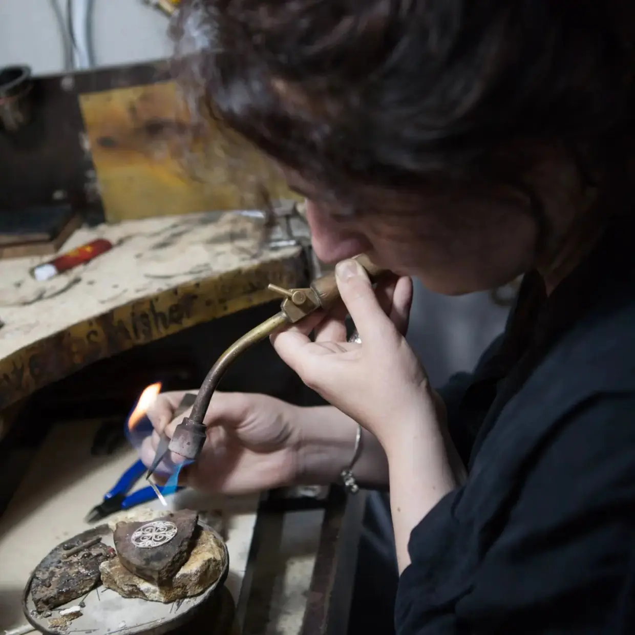 Además de la técnica del esmalte, también domina el cincelado del metal y la filigrana, considerados entre las técnicas más antiguas de la joyería. Aprendió a trabajar con metal y piedras naturales de su padre, y más tarde continuó sus estudios en el Colegio del Patriarcado, en la Facultad de Esmalte. Después de graduarse, continuó la tradición familiar y comenzó a trabajar junto a su hermano utilizando diversas técnicas de joyería, entre ellas el cincelado y la filigrana.