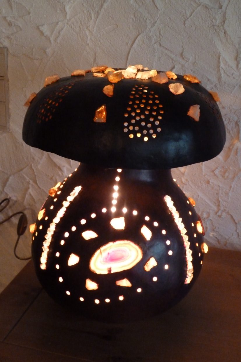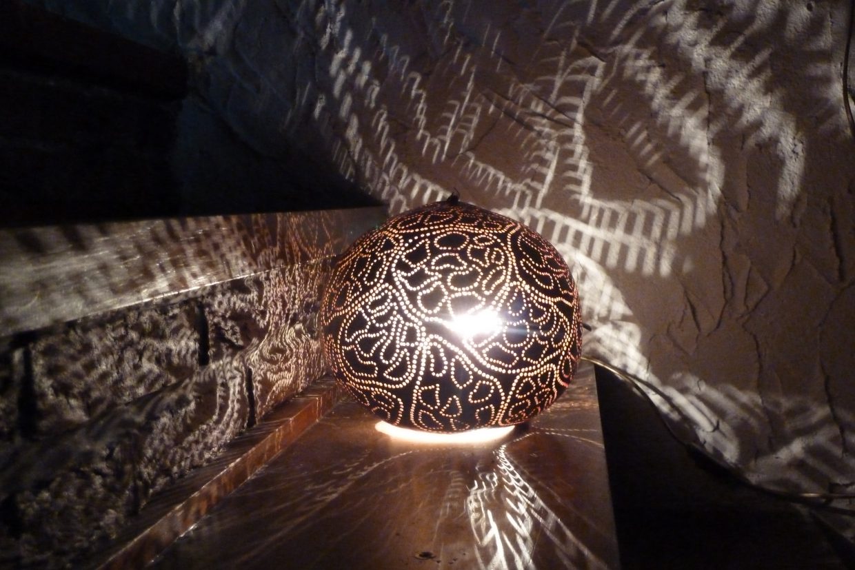 Je transforme des calebasses africaines afin de créer des lampes aux milles reflets