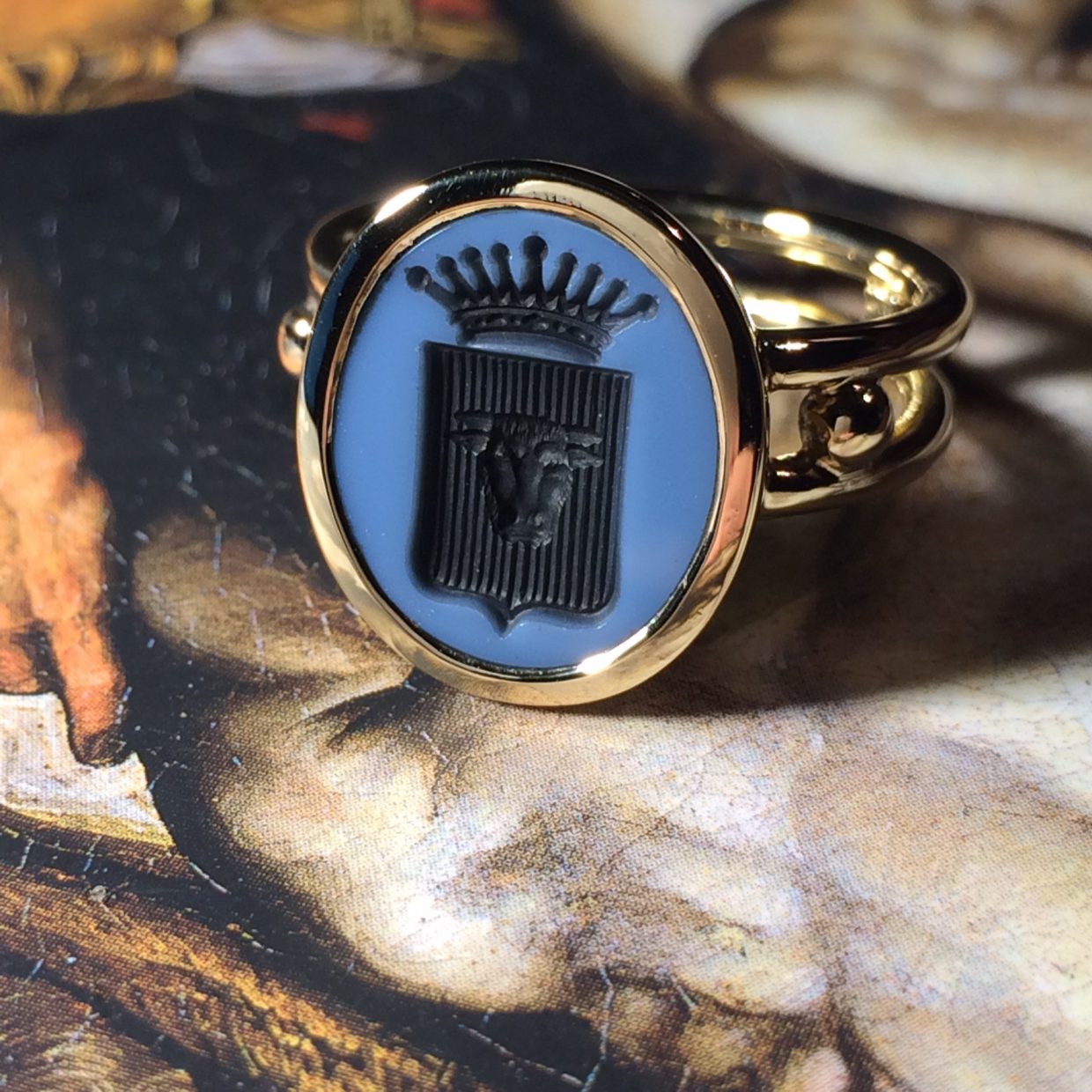 Her burins cut both precious metals and stones. She is particularly appreciated for manufacturing signet rings, specialisation acquired after years of work with the most considered Italian craftsmen. She received her first apprenticeship in late 80s in Florence with Romano Calamai. After few years she moved to Rome at master Santucci’s school. Finally she fulfilled her education at Corradini’s workshop, always in Rome. Master Corradini was the one who formed Stefania in engraving precious stones. The top level of her formation added to natural talent originated Stefania’s mastery in engraving. Working only by hand and at microscope, she is able to reproduce coats of arms no matter how complicated over signets rings. Every kind of particular, every ornament is perfectly reproduced or reshaped in a more gentle way, trying to make of any jewel a true piece of art. Obviously Stefania is not only requested for signet rings, and her skills have been utilised in various applications, over many materials, following her customer’s demand and imagination. Stefania Nicastro is an highly skilled and appreciated engraver with almost 30 years of experience. She realises, exclusively by hands, engravings over precious stones, signet rings. In time she has been awarded with several prizes and can display works realised for many statesmen, kings, and one pope.